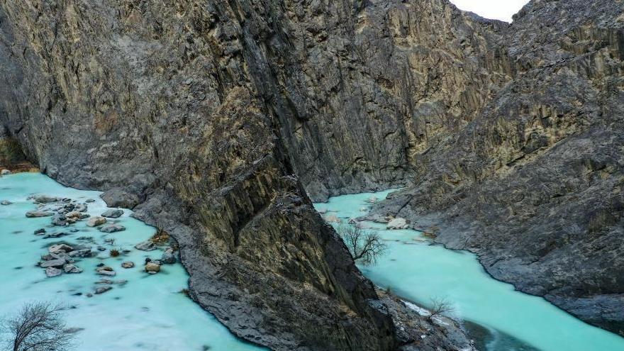 - Photos prises le 6 février au mont Kuruktag, dans le sud du comté de Bohu, dans la région autonome ouïghoure du Xinjiang (nord-ouest). La beauté de cette montagne entourée par une rivière attire chaque année de nombreux visiteurs.