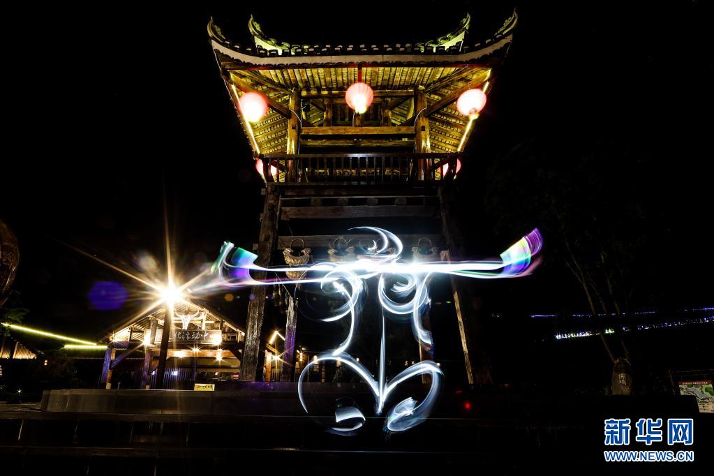 Guizhou : des œuvres de light painting illuminent la nuit du village de Wanda