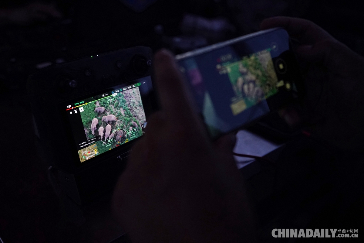 Les pompiers du Yunnan utilisent un drone pour surveiller un troupeau d'éléphants
