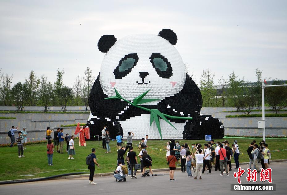 Photo prise le 19 juin, montrant une statue à l’effigie d’un panda devant l'aéroport international Tianfu de Chengdu.