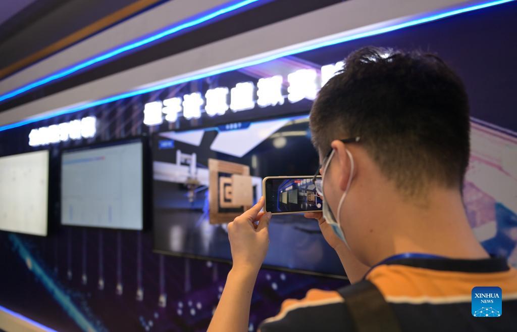 Un participant prend des photos de l'exposition sur l'informatique quantique lors de la Conférence de l'industrie quantique 2021 à Hefei, capitale de la province de l'Anhui (est de la Chine), le 18 septembre 2021. Organisée sur le thème « Technologie quantique • Révolution de l'industrie », la Conférence sur l'industrie quantique 2021 s'est tenue samedi à Hefei. La conférence a réuni un groupe de chercheurs scientifiques et de leaders de l'industrie venus discuter du développement de l'industrie quantique et a publié une série d'applications. (Han Xu / Xinhua)