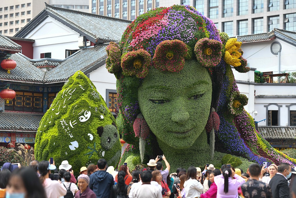 Plusieurs grandes corbeilles de fleurs ont été installées à Kunming (Yunnan) à quelques jours de la COP15 de la Convention des Nations unies sur la diversité biologique.