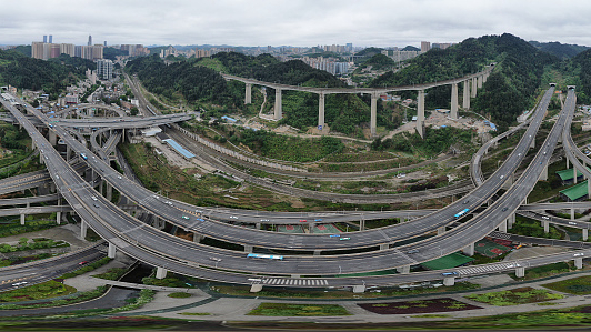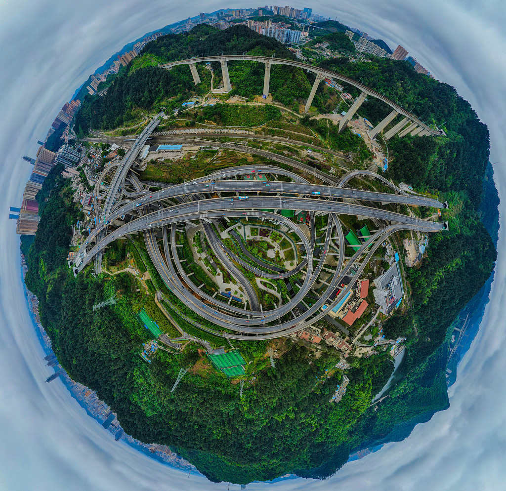 Photo aérienne prise le 17 janvier 2022 montrant l’échangeur routier de Qianchun à Guiyang, capitale de la province du Guizhou (sud-ouest de la Chine). Situé dans un canyon à Guiyang, l’échangeur, qui a une structure à 5 niveaux et 11 voies, a une dénivellation pouvant atteindre 55 mètres. Il a été surnommé « le viaduc le plus compliqué de Guiyang » par les internautes.