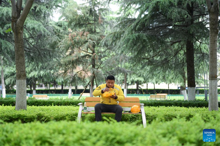 Avec ses collègues, Hua Qilong, un livreur de 25 ans vivant à Zhengzhou, a travaillé en première ligne de la prévention et du contrôle de l'épidémie en livrant tous les jours aux habitants des aliments, des médicaments et d'autres produits de première nécessité.