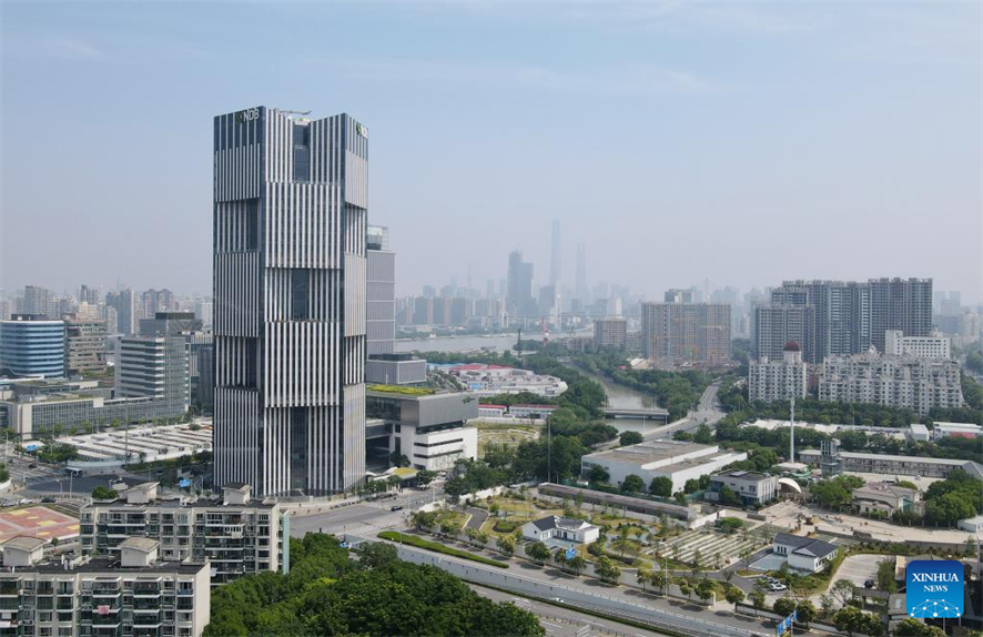 Photo aérienne prise le 17 juin 2022 montrant le bâtiment du siège de la Nouvelle banque du développement (NDB), également connue sous le nom de Banque BRICS, à Shanghai (est de la Chine).