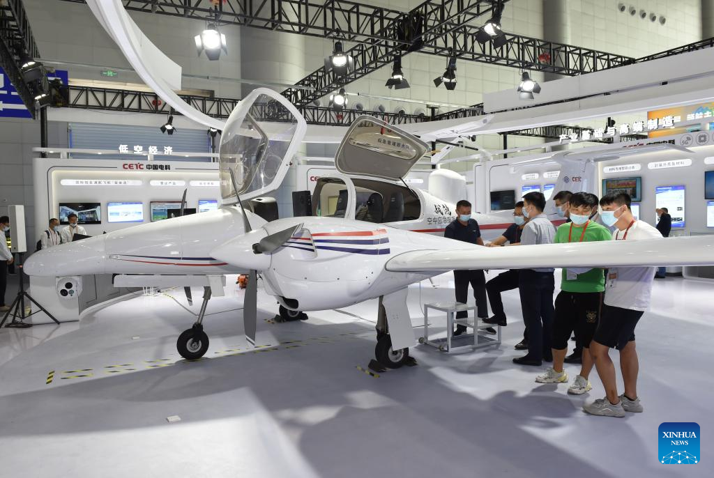 Des visiteurs regardent un avion lors de la Convention mondiale de la fabrication 2022 à Hefei, capitale de la province de l'Anhui (est de la Chine), le 20 septembre 2022. La Convention mondiale de la fabrication 2022 s'est ouverte mardi, mettant en lumière les derniers produits, technologies et applications du secteur manufacturier. L’événement de quatre jours, dont le thème est « Créer un monde magnifique avec la fabrication », propose près de 40 événements, dont des expositions, des séminaires et d'autres activités. (Zhou Mu / Xinhua)