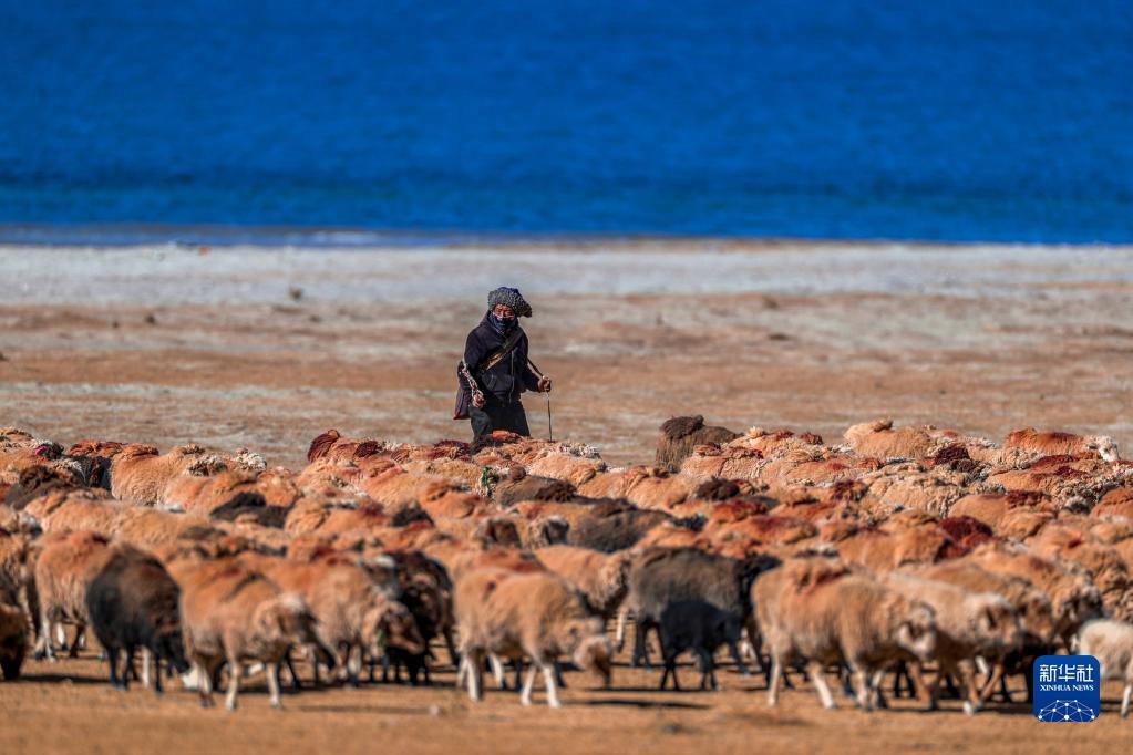 Photo prise le 11 décembre, montrant les magnifiques paysages du lac Yamdrok-Tso, situé à une altitude de plus de 4 400 mètres dans le comté de Nagarze de la ville de Shannan, dans la région autonome du Tibet (sud-ouest de la Chine).