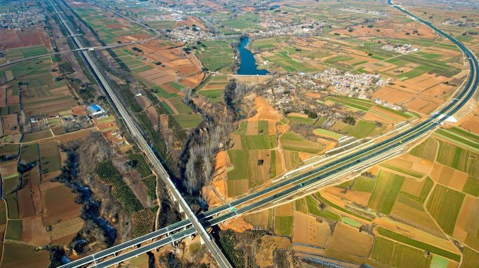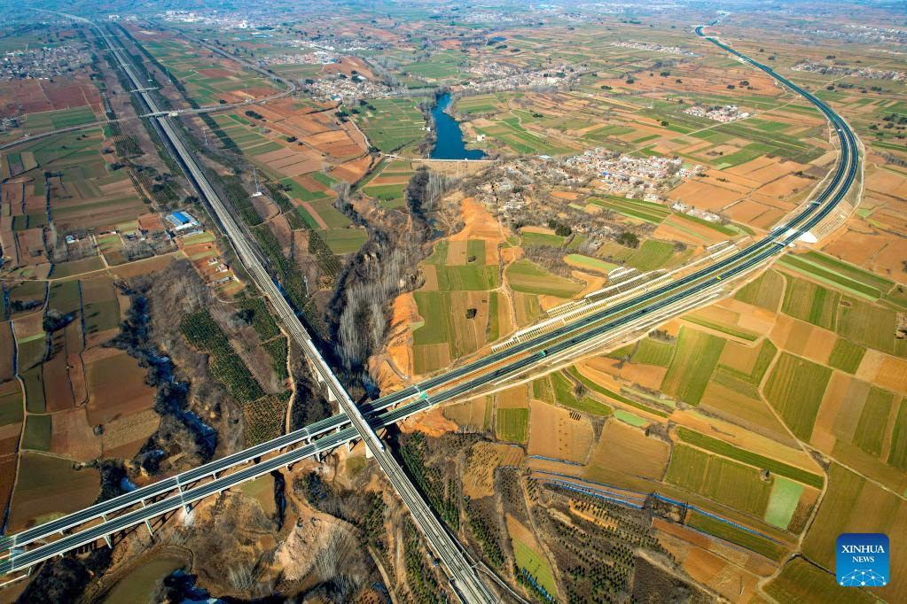 Photo aérienne prise le 26 décembre 2022 montrant l'autoroute reliant Xin'an et Yichuan, dans la province du Henan (centre de la Chine). Longue de 81 km et avec une vitesse de conception de 100 km/h, l'autoroute est une partie importante du réseau d'autoroutes de la province du Henan. (Zhang Yixi / Xinhua)