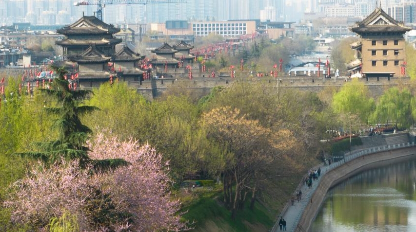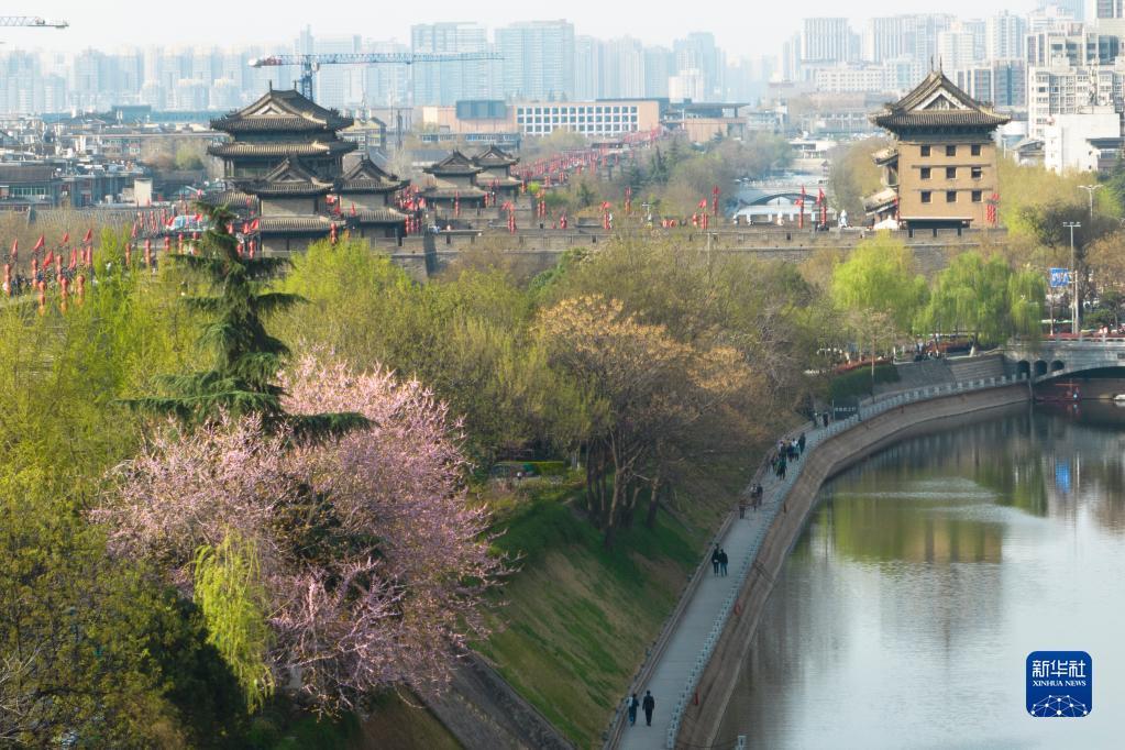 Récemment, les remparts de la ville Xi'an, dans la province du Shaanxi (nord-ouest), ont attiré de nombreux visiteurs avec leur beauté printanière.
