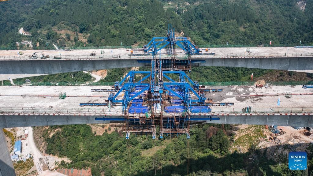 Le pont, dont les travaux de construction se poursuivent sans heurts, est un projet clé le long de l'autoroute Guiyang-Jinsha-Gulin.