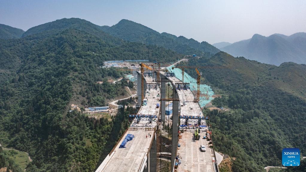 Le pont, dont les travaux de construction se poursuivent sans heurts, est un projet clé le long de l'autoroute Guiyang-Jinsha-Gulin.
