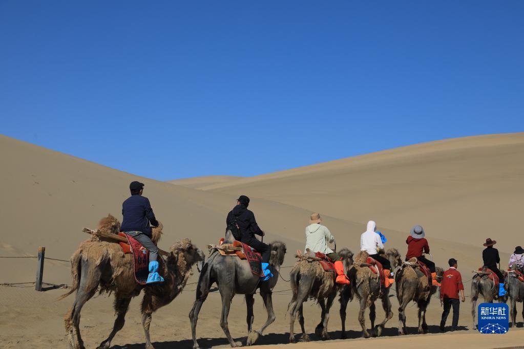 À l'heure actuelle, alors que la ville de Dunhuang, dans la province du Gansu (nord-ouest), est entrée dans sa haute saison touristique, des sites tels que les grottes de Mogao, classées au patrimoine culturel mondial, et le site touristique du mont Mingsha et de la source du Croissant de lune attirent de nombreux touristes.