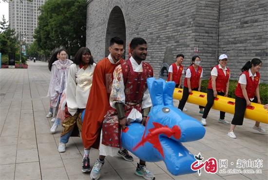 Le 20 juin, les départements locaux du district de Jimo, à Qingdao, dans la province du Shandong (est), ont mené diverses activités pour célébrer la fête des Bateaux-Dragons, telles que des spectacles littéraires et artistiques originaux, des présentations de projets de fabrication, des courses de bateaux-dragons sur terre, des jeux, des expériences de costumes, des visites d'amis étrangers dans la vieille ville, et ce afin de promouvoir davantage l'excellente culture traditionnelle chinoise, de cultiver et de mettre en pratique les valeurs fondamentales du socialisme, de créer une atmosphère festive joyeuse et paisible et de promouvoir un nouveau style de vie, permettant aux amis étrangers et aux habitants de ressentir la riche culture traditionnelle chinoise.