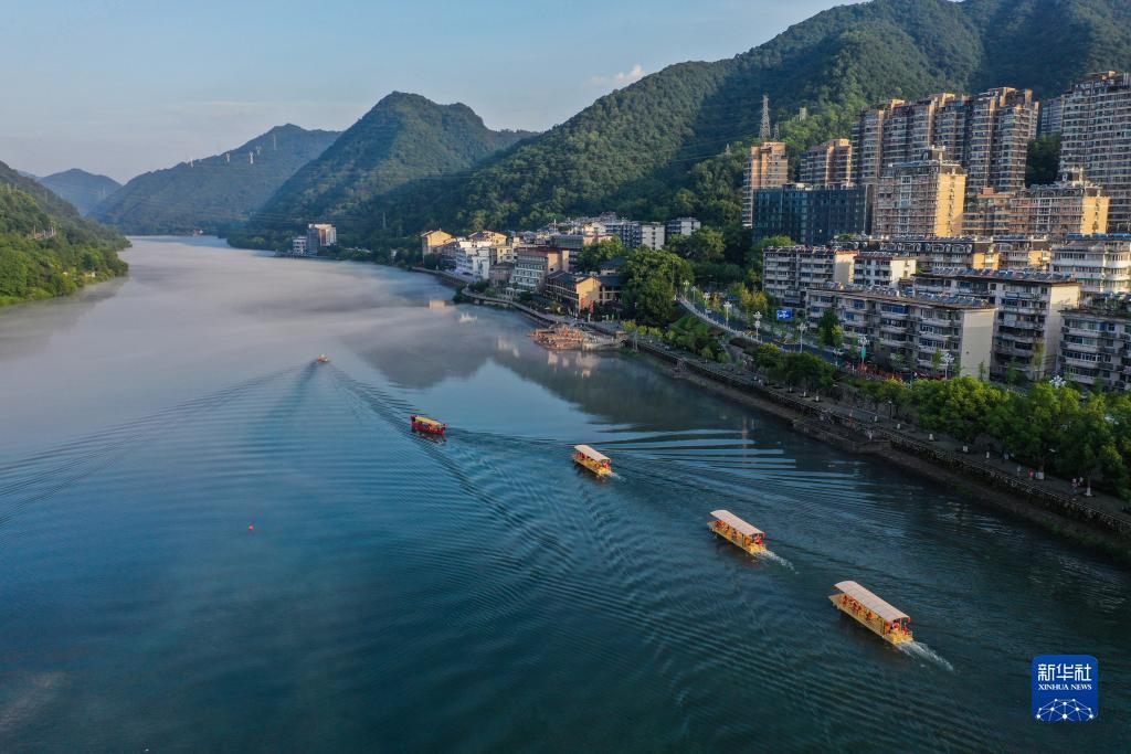 En été, le site de la rivière Xin'anjiang, à Jiande, dans la province du Zhejiang (est), a lancé une activité de promenade en bateau rafraîchissante. La qualité de l'eau de la rivière est très bonne, et la température de l'eau est de 12 à 17°C toute l'année.