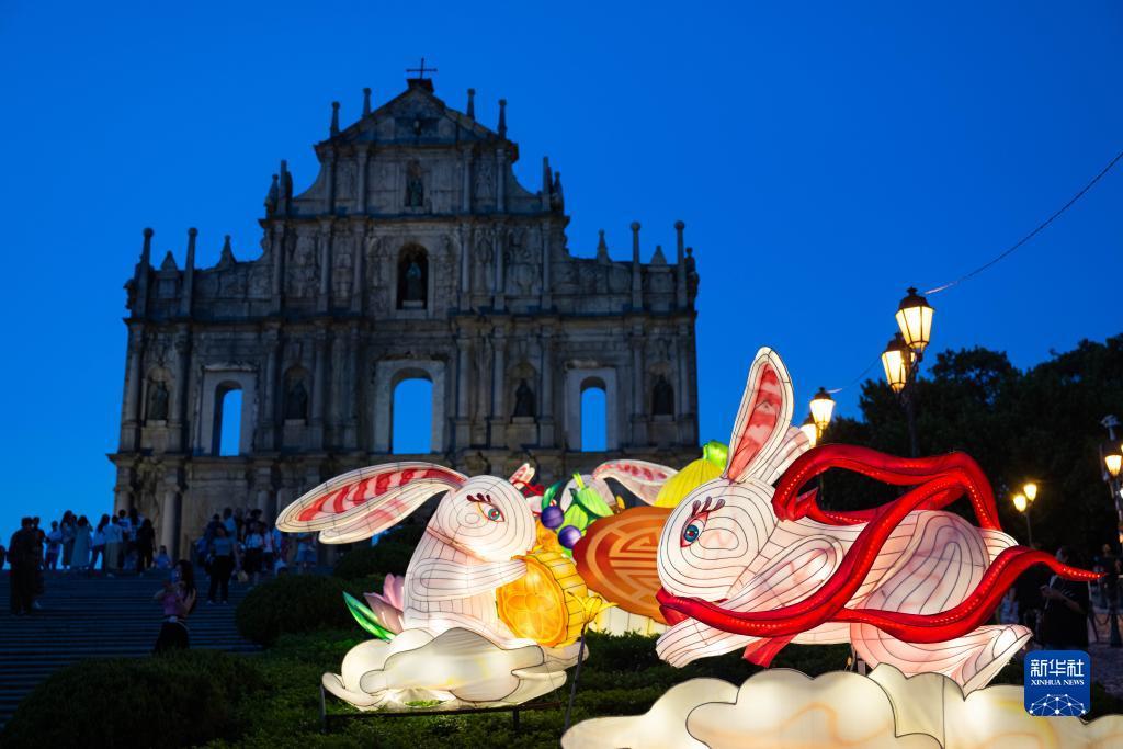 Macao : des décorations lumineuses installées pour célébrer l'arrivée de la fête de la Mi-Automne