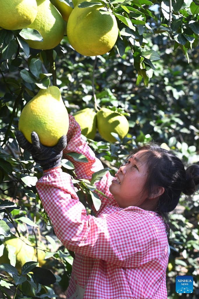 Guangxi : une fructueuse récolte de pamplemousses à Luocheng
