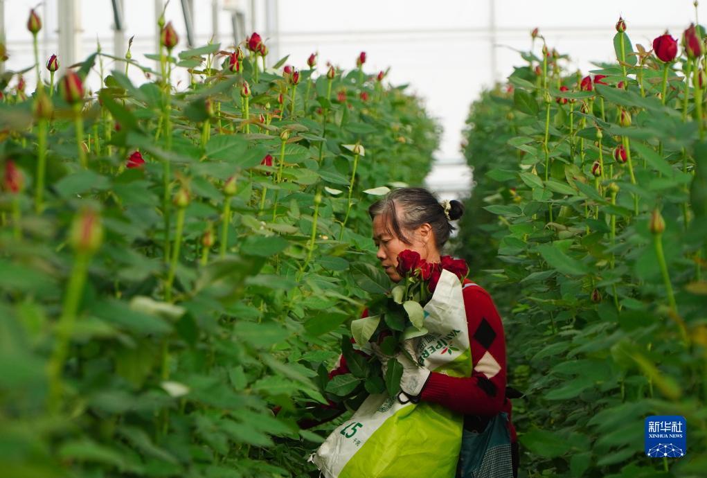 Shandong : une récolte de roses chargée en hiver