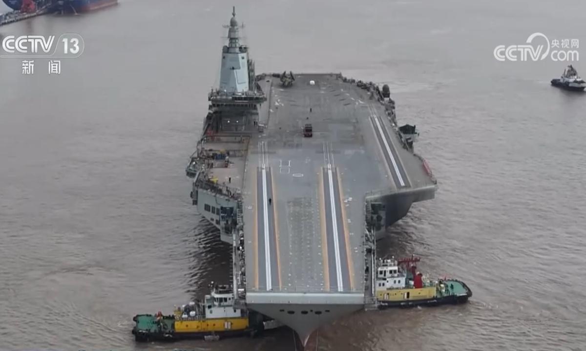 Une courte vidéo diffusée lors du reportage de CCTV a montré le transporteur en train d’être remorqué non loin du quai, marquant sa sortie de l'endroit où il était amarré depuis son lancement.