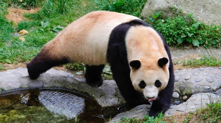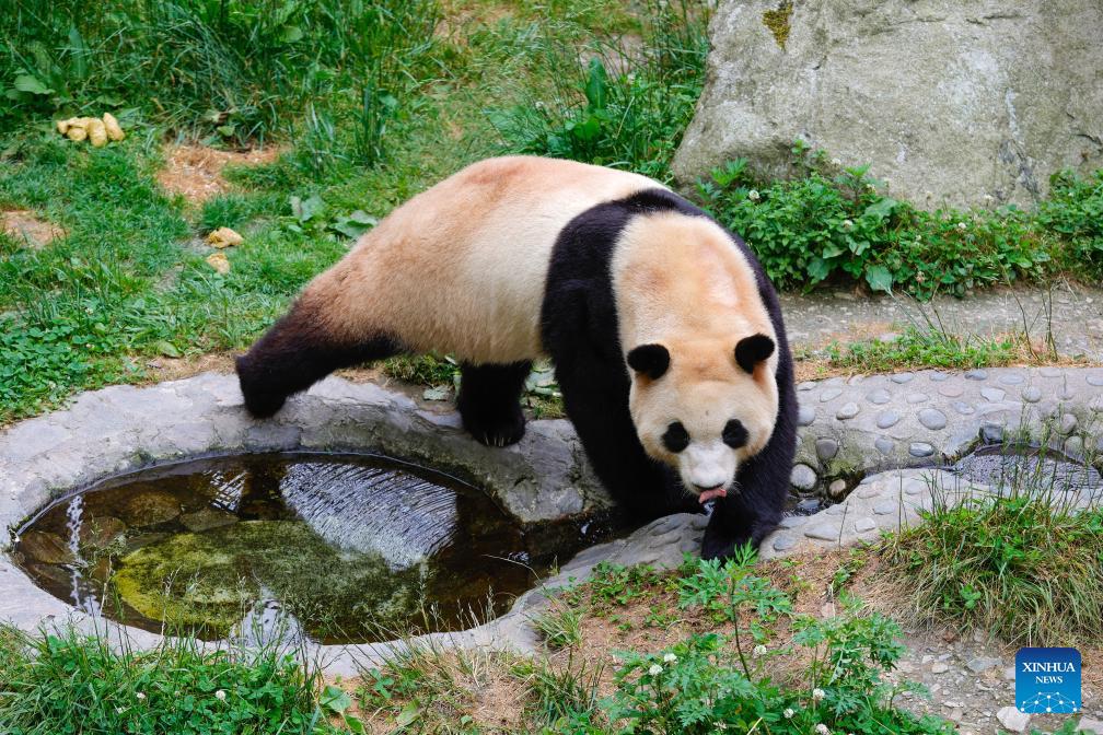 Photo prise le 27 mai, montrant Fu Bao en train d’errer dans la base Shenshuping de Wolong, au Centre de conservation et de recherche sur le panda géant de Chine, dans la province du Sichuan (sud-ouest). Depuis son retour en Chine au début d’avril, la femelle Fu Bao, premier panda géant né en Corée du Sud, vit dans la base Shenshuping de Wolong. Selon le centre, Fu Bao s’adapte bien à son nouvel environnement et pourra rencontrer le public dans un avenir proche.