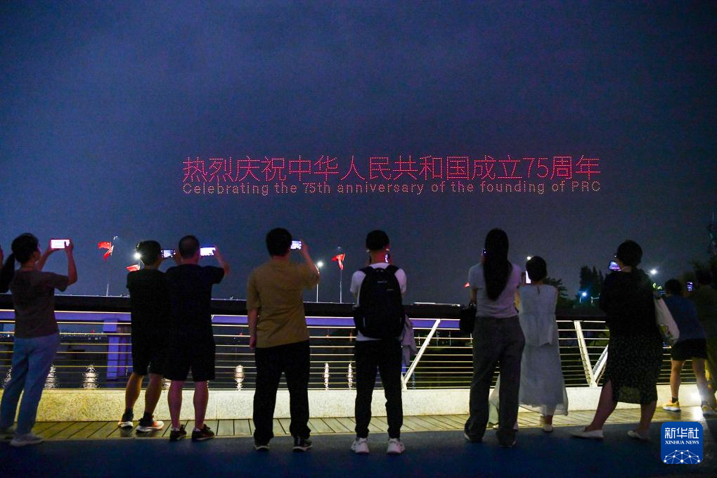 Dans la soirée du 26 septembre, un spectacle de 10 000 drones visant à célébrer la Fête nationale a eu lieu au-dessus du parc de la baie de Shenzhen, dans la province du Guangdong (sud), où 10 197 drones ont offert aux visiteurs un festin visuel mélangeant la technologie et l'art.