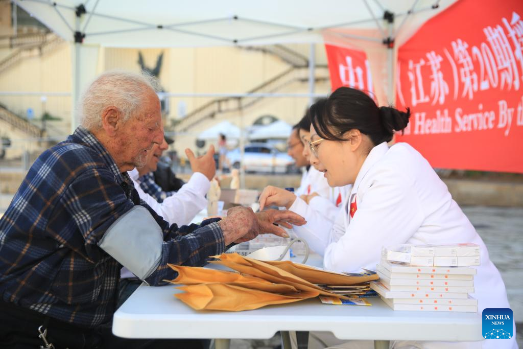 Les membres de la 20e équipe d’aide médicale chinoise à Malte offrent des consultations en santé aux habitants de Bormla, également connue sous le nom de Cospicua, à Malte, le 9 mars 2025. (Chen Wenxian / Xinhua)