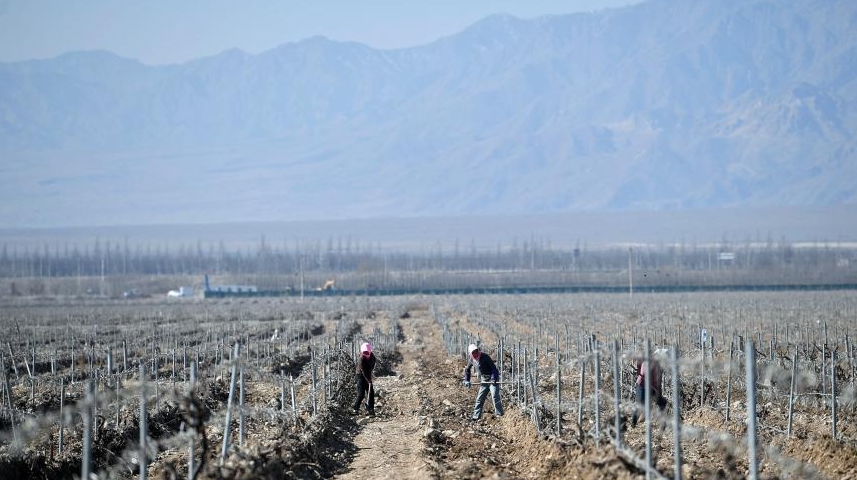 Récemment, avec la hausse des températures, de milliers d’hectares de vignes situées au pied oriental du mont Helan, dans la région autonome de Mongolie intérieure (nord), sont entrées dans la saison des travaux de printemps. Les ouvriers ont sorti de terre les vignes qu’ils avaient enterrées pour l’hiver et les ont accrochées sur des claies pour accueillir l'arrivée du printemps.