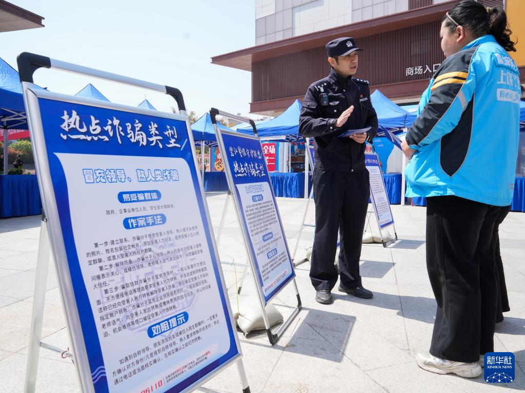 Le 2 avril, la branche du district de Minhang du Bureau de la sécurité publique de Shanghai, en collaboration avec les communautés résidentielles, les banques et d'autres départements, a organisé diverses activités de sensibilisation à la lutte contre la fraude. Ces initiatives visent à aider les résidents à mieux comprendre les mécanismes de prévention de la fraude, notamment en leur distribuant des brochures informatives et de petits cadeaux. (Ding Ting/Xinhua)