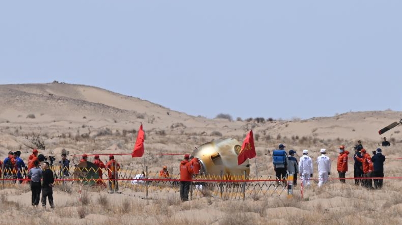 Le moteur de freinage s'est ensuite allumé, et la capsule de retour s'est séparée de la capsule de propulsion. La capsule de retour s'est posée à 13H08 sur le site d'atterrissage Dongfeng, dans la région autonome de Mongolie intérieure, dans le nord de la Chine, a indiqué la CMSA.