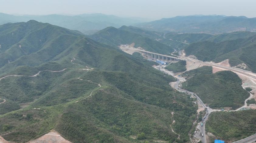 Site de construction du projet d'extension de l'autoroute Shijiazhuang-Taiyuan. Photo prise le 7 mai.