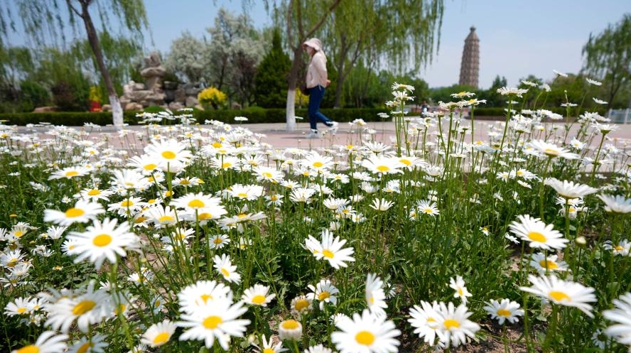 Le 25 mai, des touristes observent des fleurs au parc Haibao, à Yinchuan, dans la région autonome Hui du Ningxia (nord-ouest).
