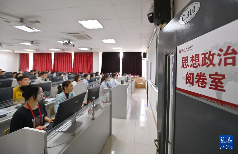 Photo prise le 16 juin, montrant des professeurs en train d’évaluer des copies du gaokao à l'Université normale de Tianjin. Cette année, à Tianjin, 74 000 élèves ont participé au gaokao, l’examen national d’entrée aux établissements d’éducation supérieur. Le travail de notation des copies de l'examen, qui se fait en ligne, est actuellement en cours.