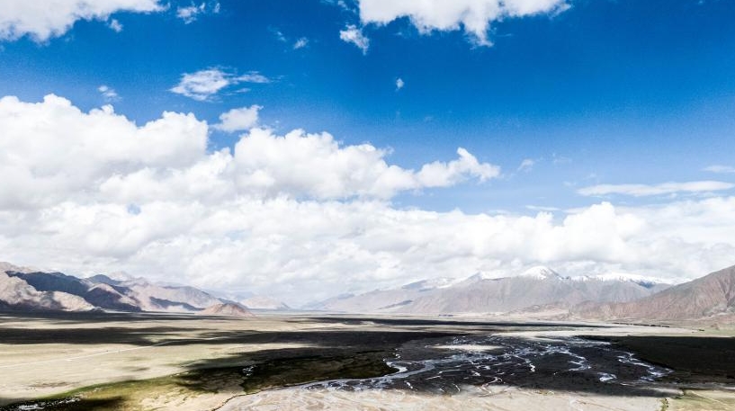 En été, la rivière en tresses de Yeniugou, située sur le territoire de la ville de Golmud, dans la préfecture autonome mongole et tibétaine de Haixi, dans la province du Qinghai (ouest), émerveille ses visiteurs avec ses paysages pittoresques de toute beauté.