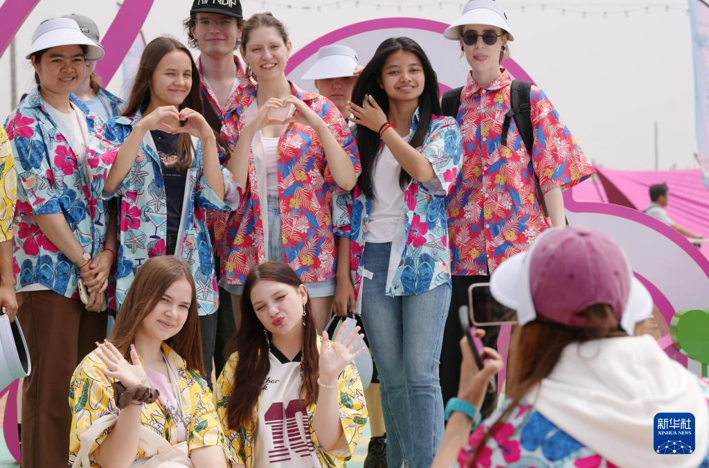 Des touristes prennent la pose sur la côte de Jinshitan, à Dalian. Photo prise le 28 juin.