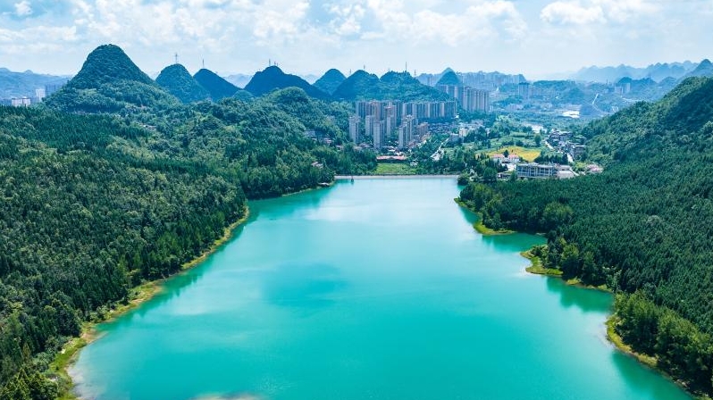 En été, le parc de Yaochi, situé au district de Zhongshan, à Liupanshui, dans la province du Guizhou (sud-ouest), offre à la vue un paysage magnifique, attirant de nombreux touristes.