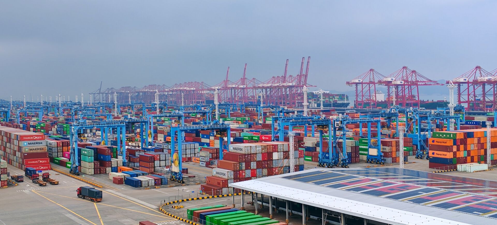 Le terminal à conteneurs de Meishan, situé sur l'île de Meishan, à Ningbo, dans la province du Zhejiang (est), est la cinquième zone portuaire sous douane de Chine.