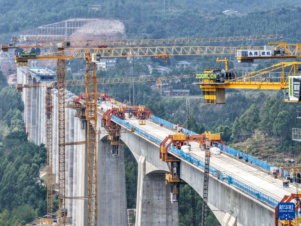 Jonction du grand pont à deux voies de Caijiagou sur la LGV Chongqing-Wanzhou