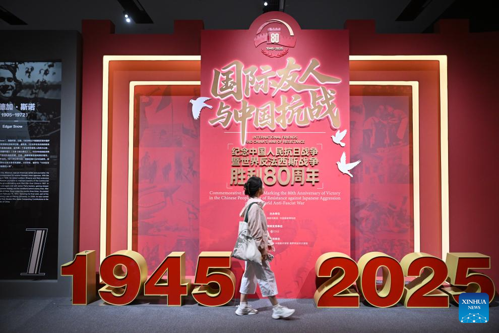 Un journaliste visite l'exposition « Amis internationaux et Guerre de résistance de la Chine » lors d'une présentation à la presse, tenue au Musée national de Chine, à Beijing, le 7 septembre 2025. L'exposition « Amis internationaux et Guerre de résistance de la Chine » sera officiellement inaugurée le 9 septembre au Musée national de Chine pour commémorer le 80e anniversaire de la victoire dans la Guerre de résistance du peuple chinois contre l'agression japonaise et la Guerre mondiale antifasciste. (Xinhua/Jin Liangkuai)