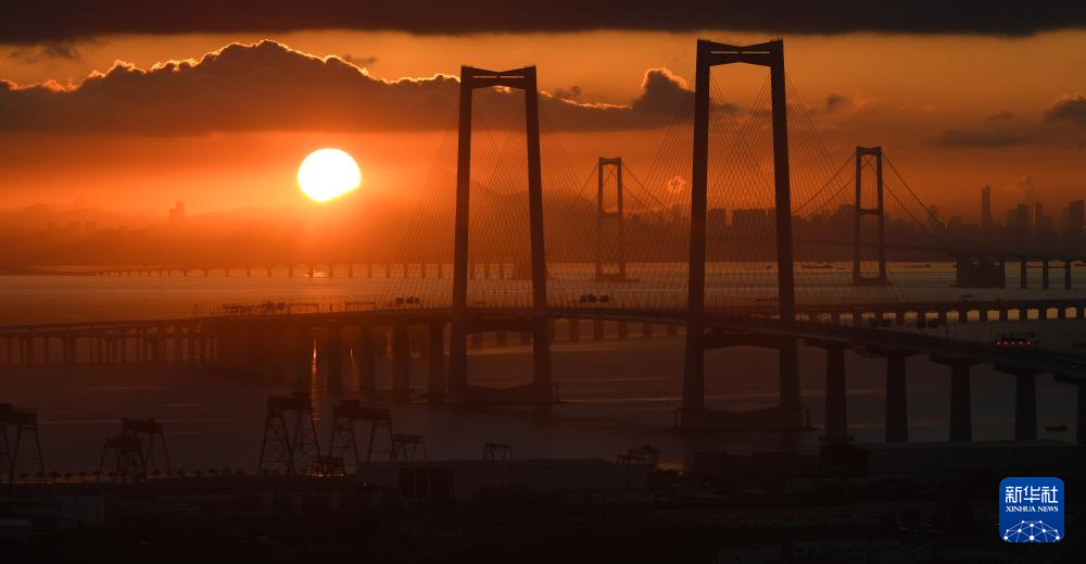 Photo prise le 14 septembre, montrant le Grand pont Shenzhen-Zhongshan à l’aube.