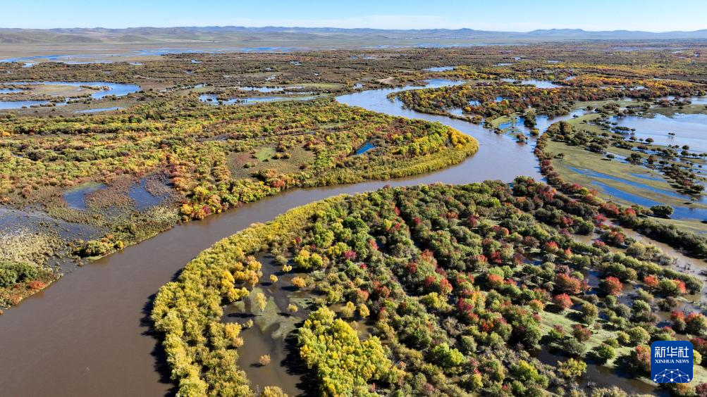 Mongolie intérieure : vue automnale des zones humides d'Erguna