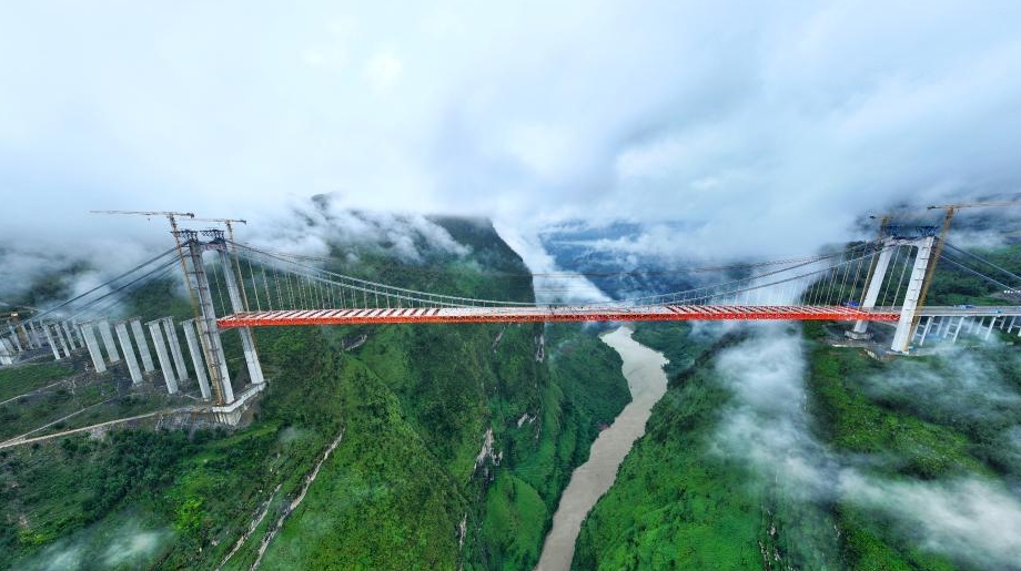 Le 23 septembre, le grand pont Tianmen de l'autoroute Anshun-Panzhou, situé à Liupanshui, dans la province du Guizhou (sud-ouest), a été relié avec succès.