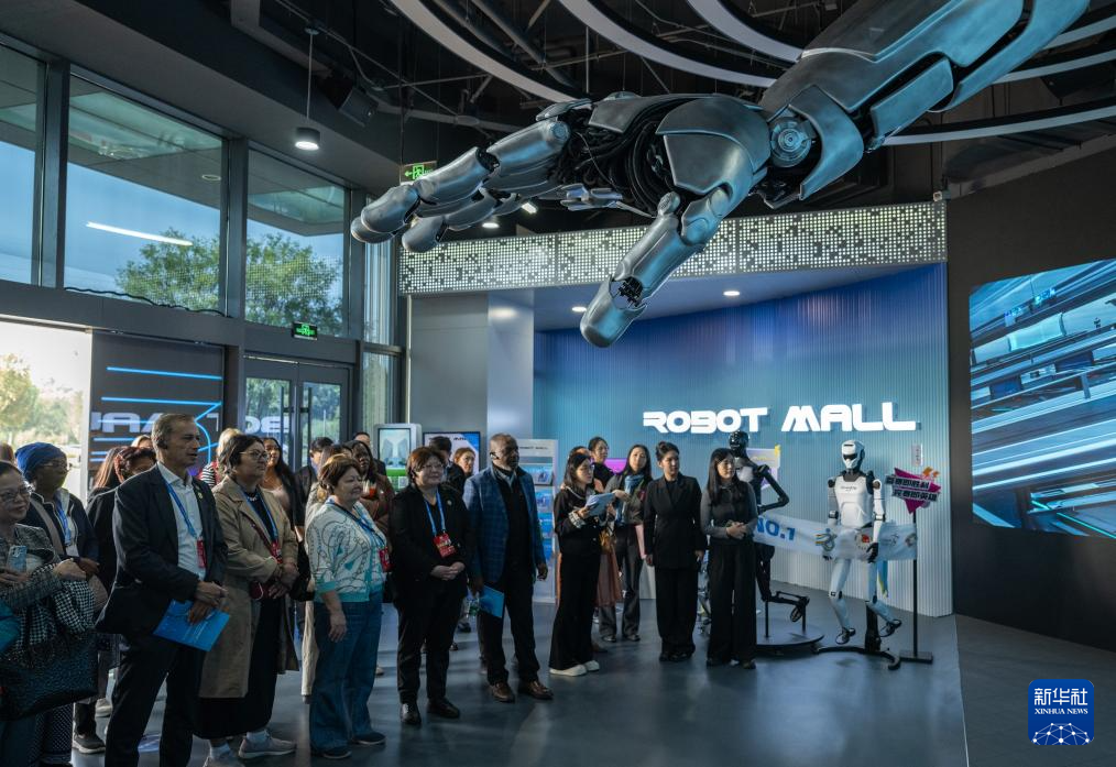 Des participants au Sommet mondial des femmes 2025 visitent le « Monde des robots », dans le district de Jingkai (Zone de Développement Économique et Technologique) de Beijing, le 14 octobre. (Xue Yuge/Xinhua)