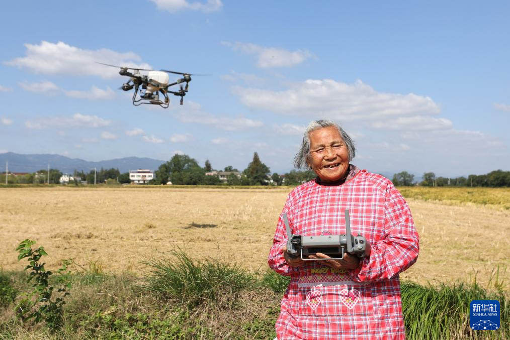 En images : une grand-mère de 82 ans maîtrise le drone agricole et la diffusion en direct