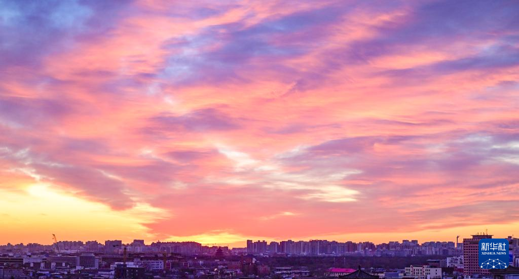 Beijing : la splendeur matinale des nuages empourprés