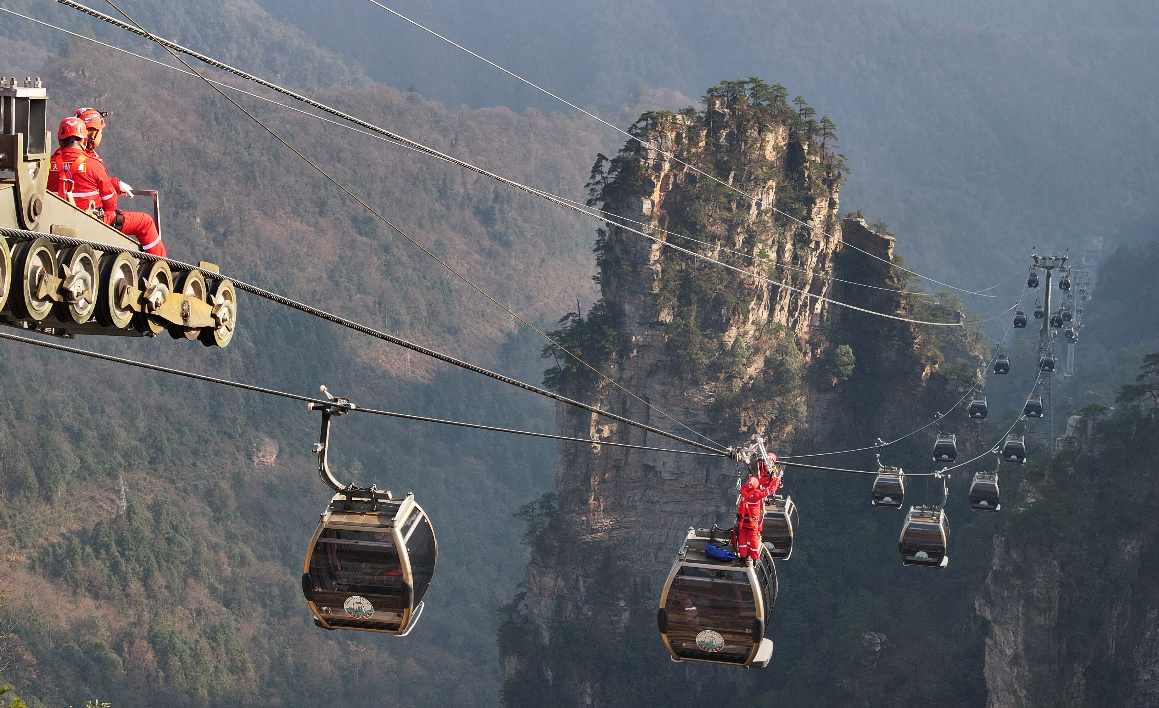 ​Tenue d'un exercice de sauvetage d'urgence sur le téléphérique de Zhangjiajie