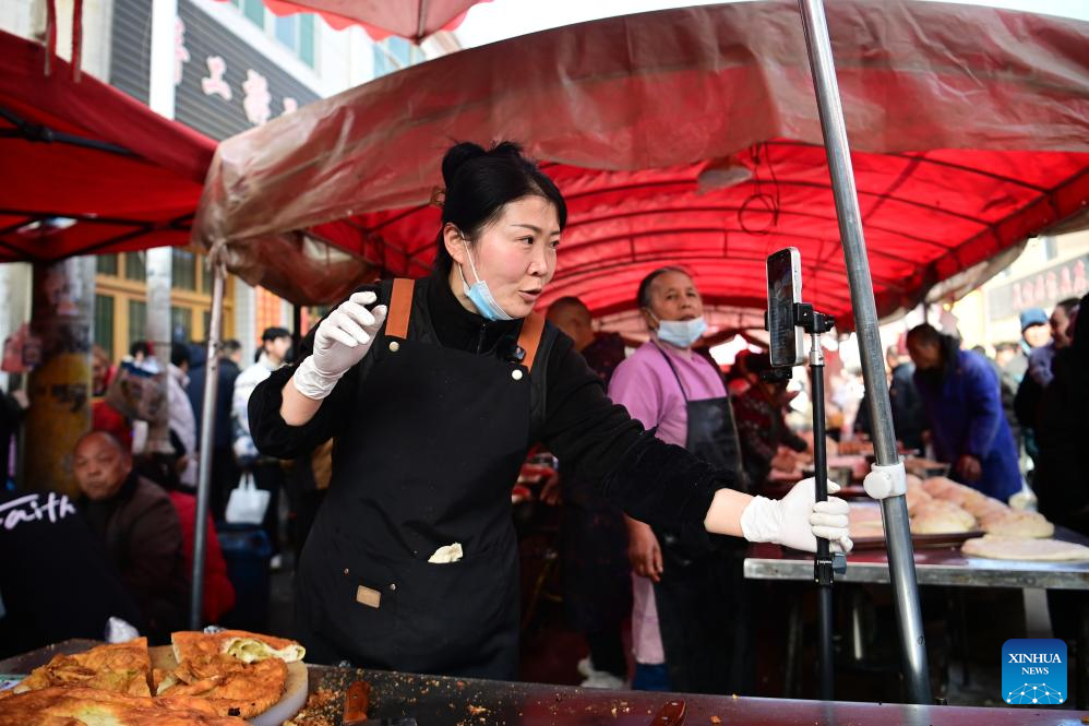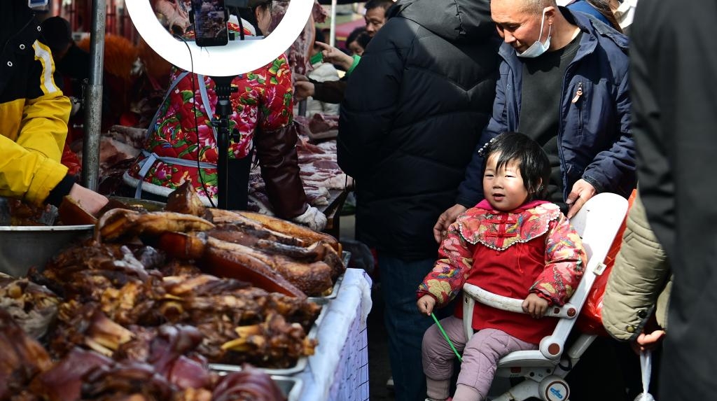 En tant que plus grand marché du xian de Lantian, le marché de Jiaodai abrite plus de 1 500 stands, proposant une grande variété de produits tels que des spécialités locales, des produits de première nécessité, des outils agricoles et du bétail, ainsi que des snacks locaux. Il constitue aussi désormais une attraction touristique majeure, grâce à une gestion formalisée et à des efforts de promotion efficaces. (Xinhua/Zou Jingyi)
