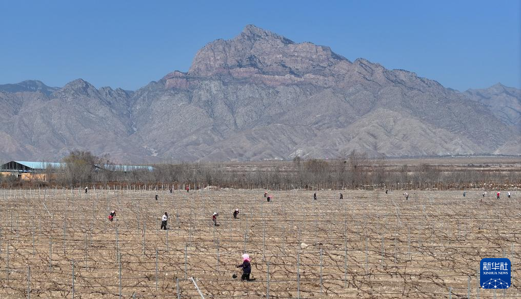 Début du débourrement des vignes au pied du mont Helan