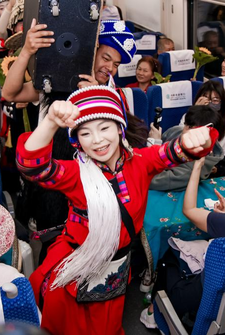 En images : des galas de la fête du Printemps organisés à bord du chemin de fer Chine-Laos
