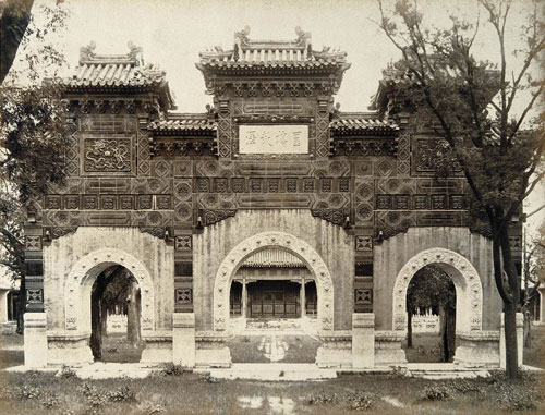 Le portique commémoratif en tuiles vernissées du Collège impérial (photo prise dans les années 1900-1906 par S. Yamamoto)