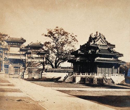 L'arc commomératif du Temple Dagaoxuan et le pavillon Xili (photo prise en 1860 par Felice Beato)