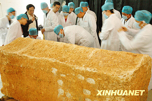 Une dizaine d'experts se sont réunis à Shangsi pour étudier le moyen d'ouvrir le cercueil